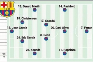 体育资讯9月21日讯 西甲第5轮比赛,巴萨将在主场对阵赫塔费,西班牙媒体《阿斯报》预测了此役巴萨的首发阵容。